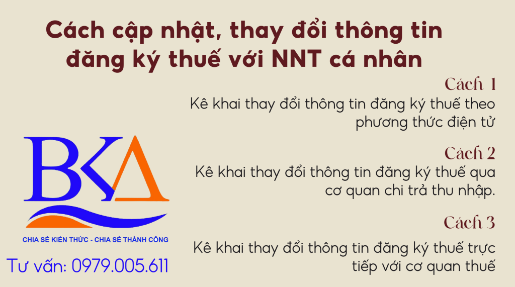 Cách 2: Kê khai thay đổi thông tin đăng ký thuế qua cơ quan chi trả thu nhập.
