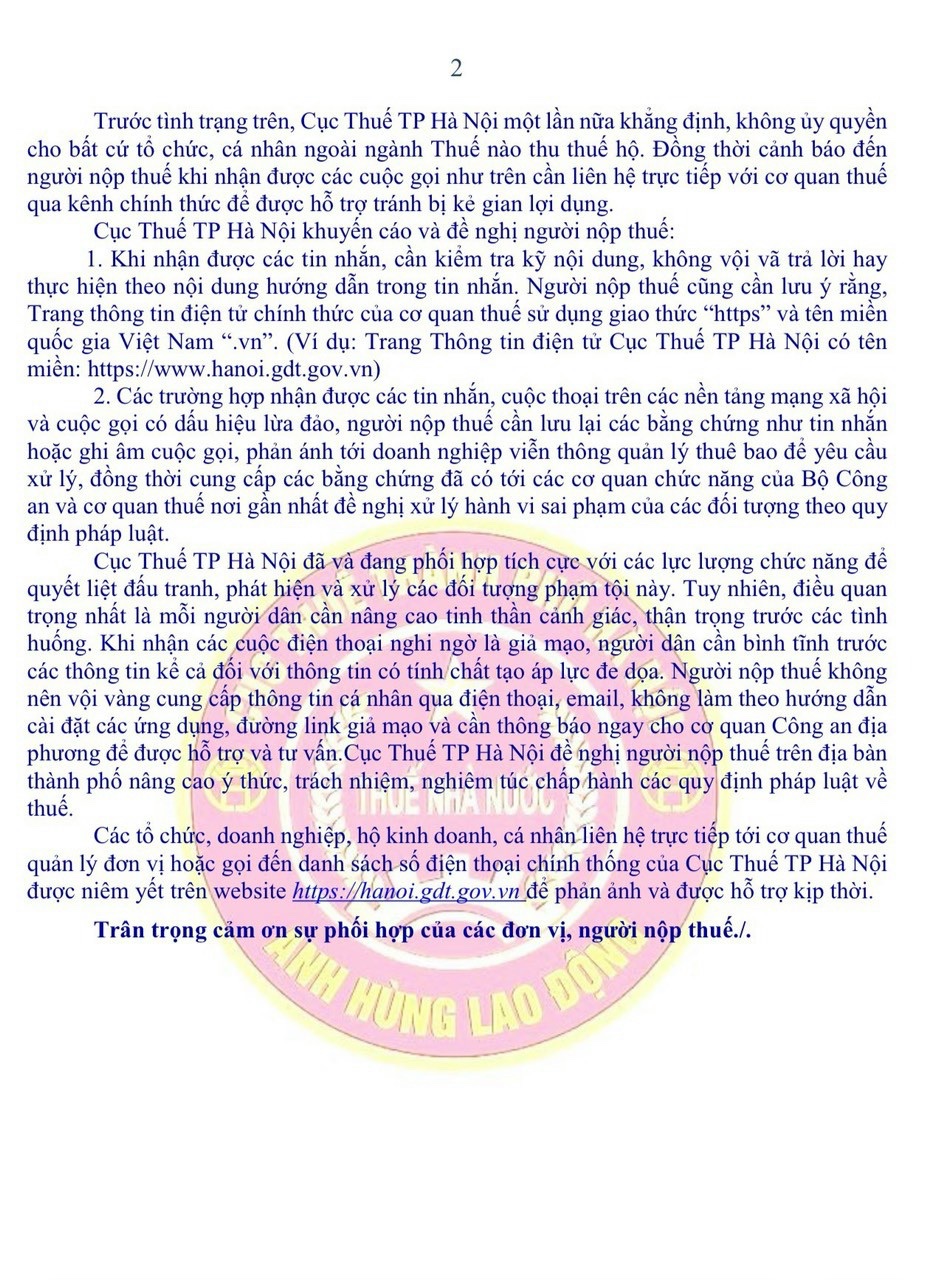 Để phòng chống hiệu quả tình trạng lừa đảo, Cục Thuế TP Hà Nội khuyến cáo người dân: