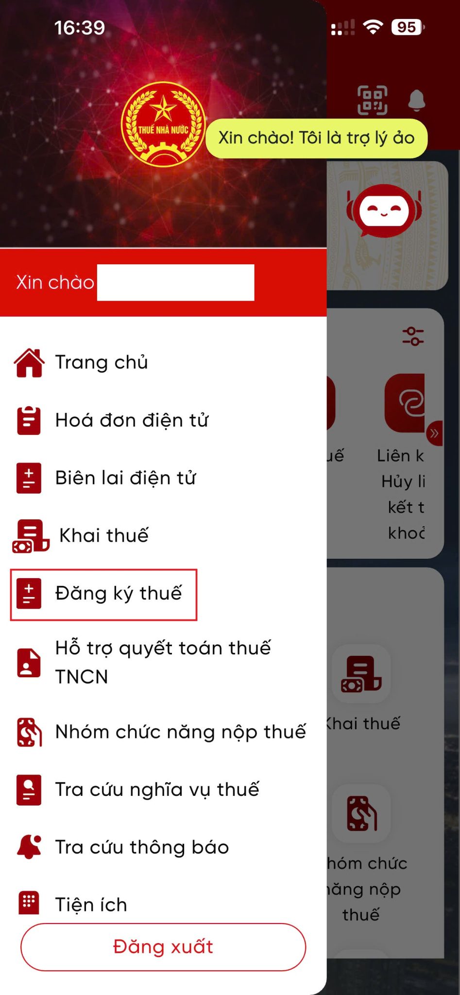 🔹 Bước 2: Chọn chức năng “Đăng ký thuế”