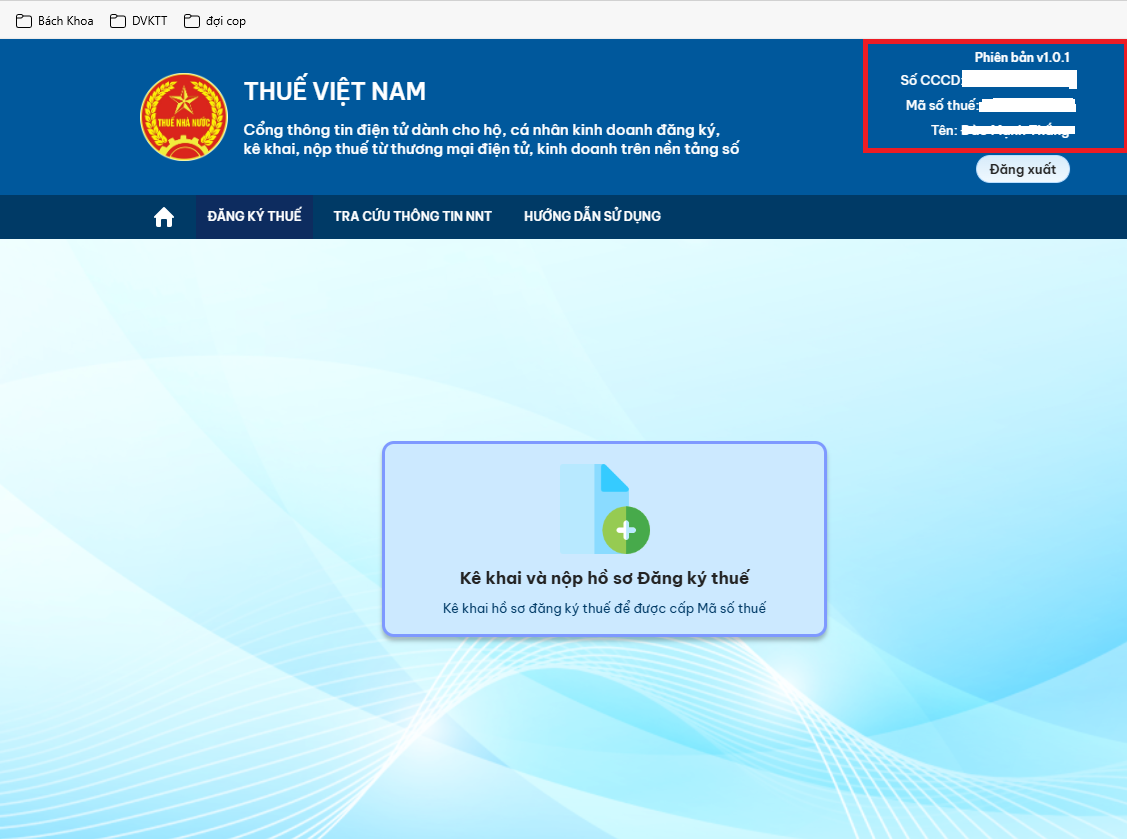 Mã số thuế (nếu có): Nếu bạn đã có mã số thuế cá nhân, hệ thống sẽ hiển thị.