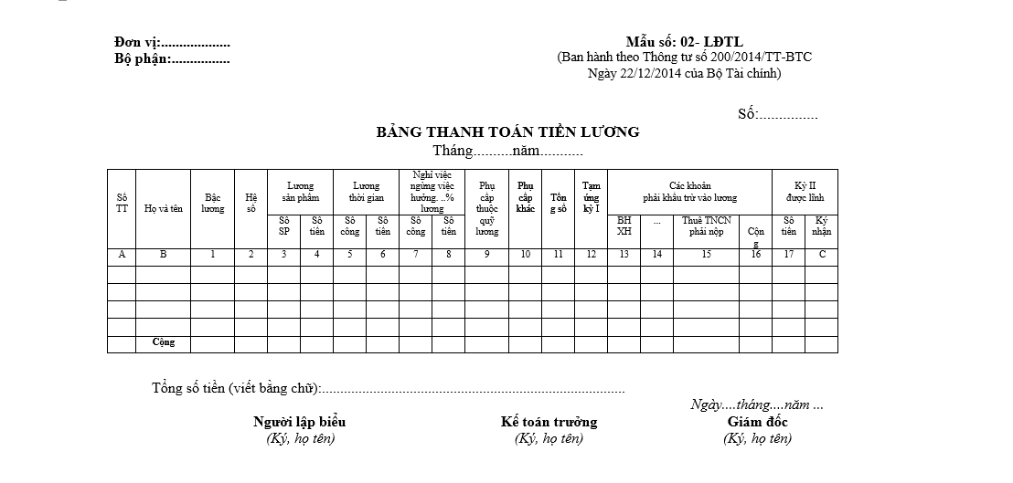 Tải về bản word: Bảng-thanh-toán-tiền-lương-mẫu-02-LĐTL-Thông-tư-200